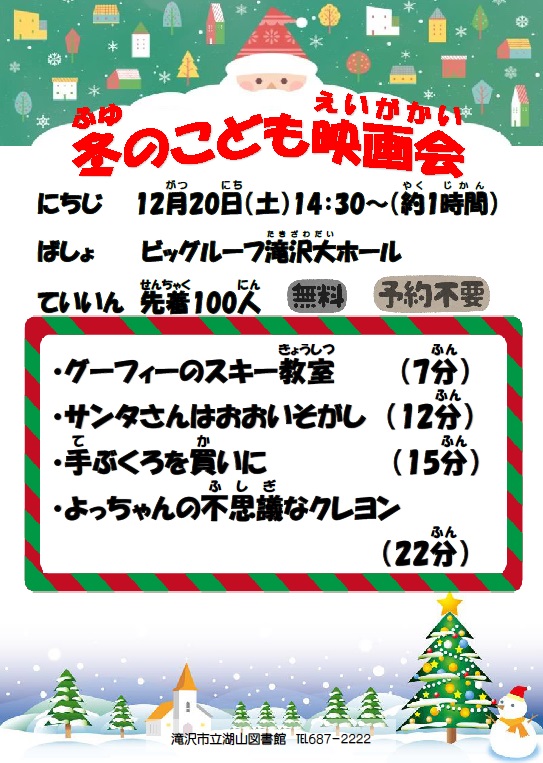 | 11月15日(土) | ビッグルーフ滝沢 アクティブルーム | 13:00~ | ねずみくんのチョッキ ほか |