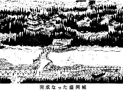 盛岡城の位置の決定に伴い、今まで各地にあった戦国時代の城は、主なもの二・三を残して他はこわされる。新しく抬頭した火砲に対する築城として、石塁が用いられ、射程距離を案配して濠の巾と土塁を増大し、治府と防禦をかね、この地では未曽有の城郭が誕生した。従って武士は城下に移り、人が集り、商工業も発達し、城下町をつくったのである。