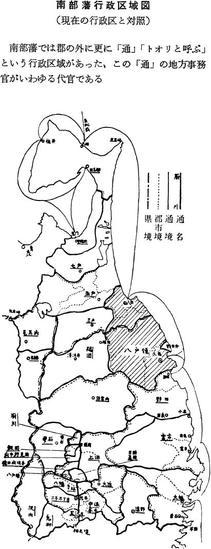 南部領内では代官の統治区域を通(とおり)と称している。これは代官支配区域を指したのではなく、単に方面とか地方を意味していたであろう。ところが天和年間(1681-83年)になると、三十三通はいずれも代官所統治区域を指した名詞になっている。