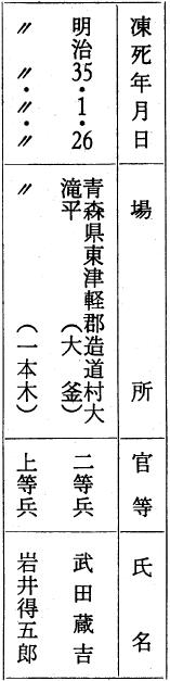 明治三十五年一月二十三日八甲田山凍死事件がある。本村においては次の二名が凍死している。