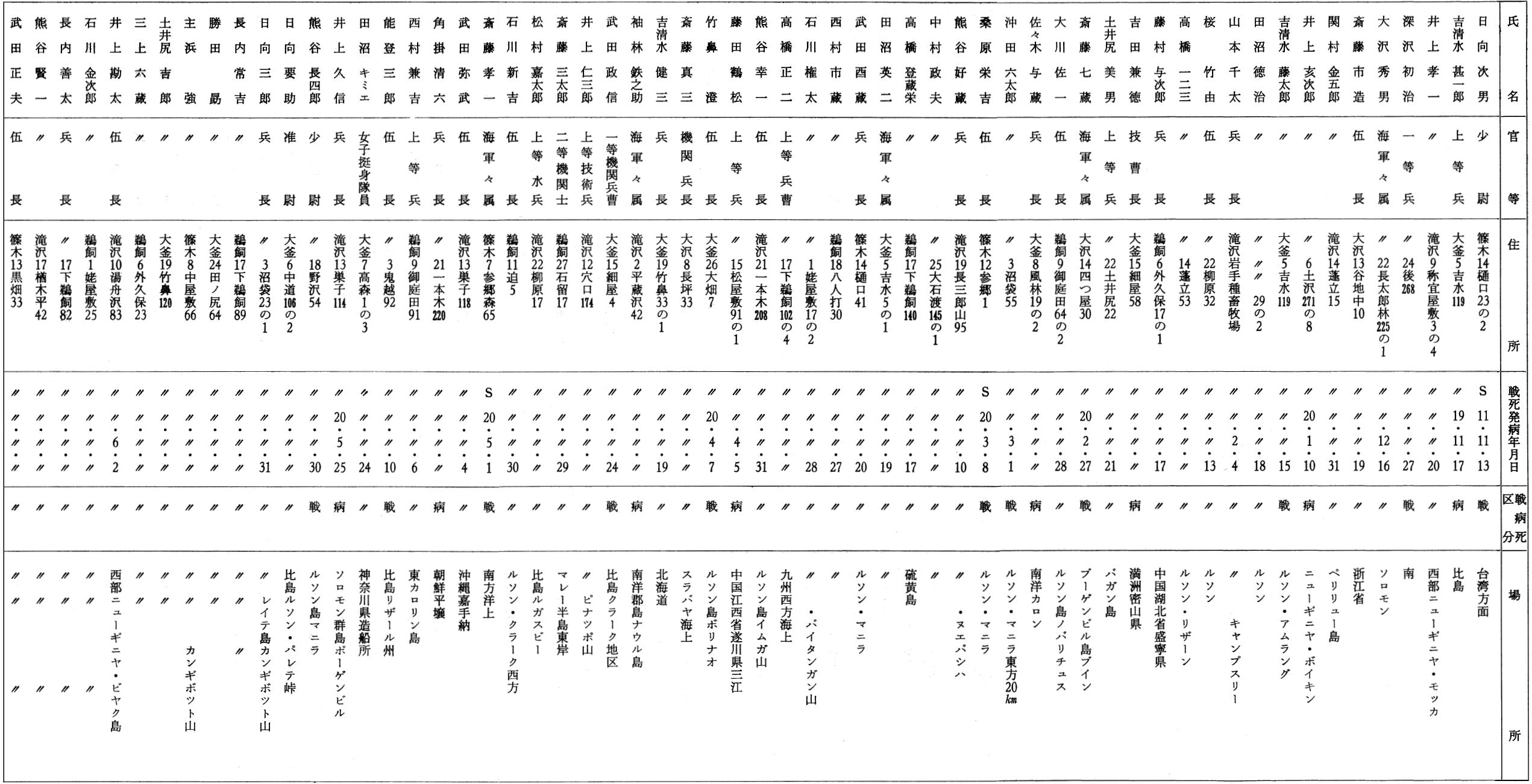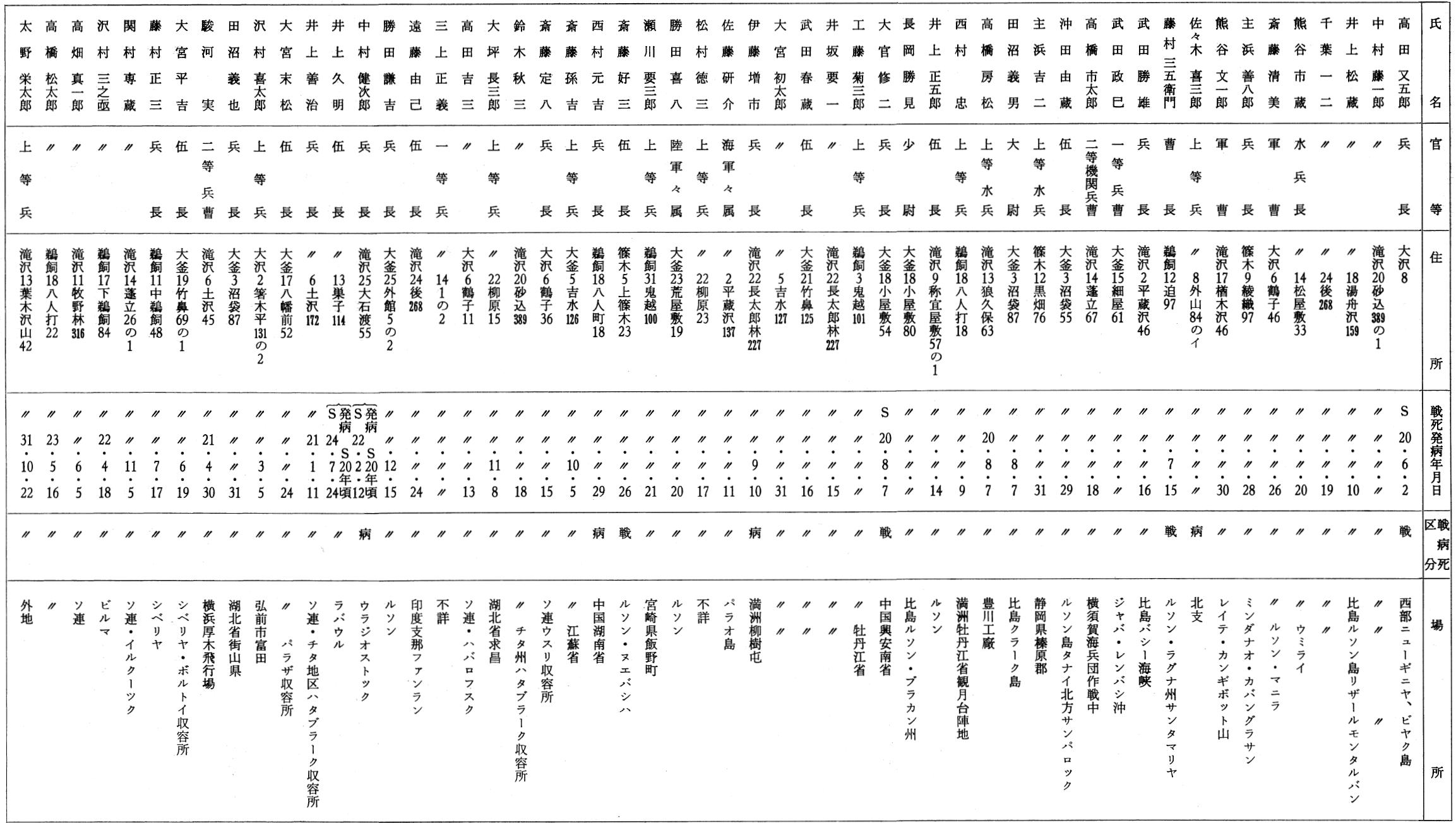本村における戦病死者は下記の通りである。