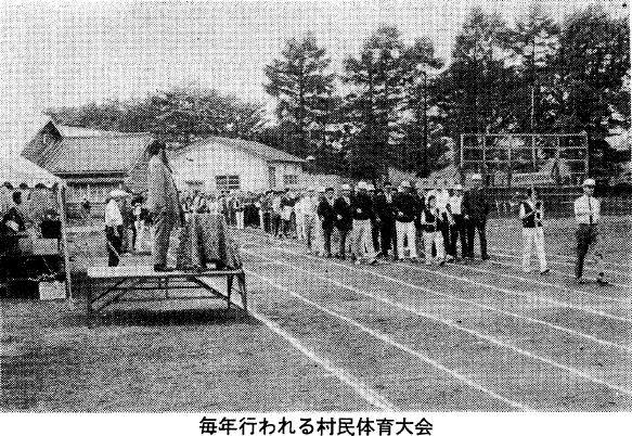 総合体育大会とは別に村民登山大会、体育の日の行事として、村民歩・走大会、婦人バレーボール、壮年野球大会など多種多様の行事を開催している。