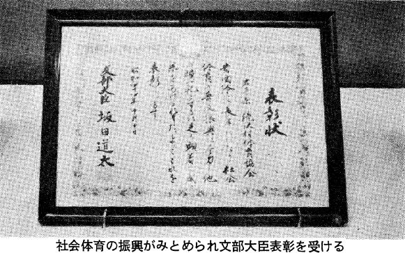 同年十月十日、昭和二十九年結成以来、毎年、陸上兢技、野球、バレーボール、相撲など各種競技を盛り込んだ総合体育大会を催し、また、大会とは別に、村民岩手山登山、婦人バレーボール大会、青年男女ソフトボール大会、村民歩・走大会など多彩なスポーツ行事が認められ、社会体育団体の優良団体として、文部大臣表彰を受けた。