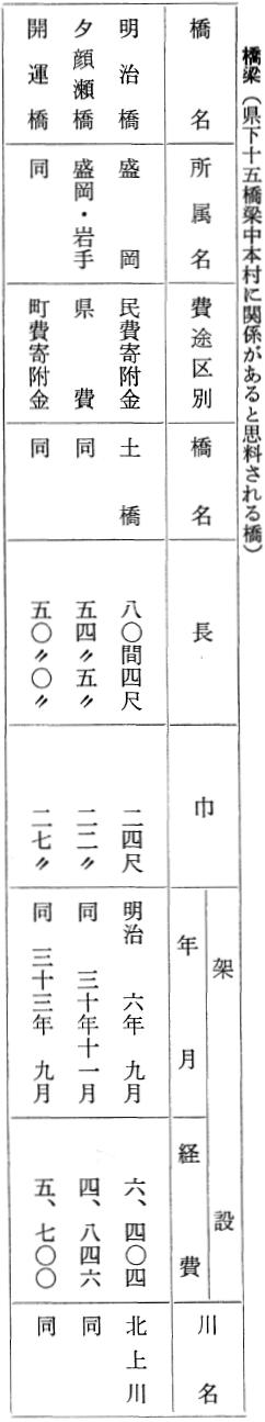明和二年中島橋ができると落着き「この橋の修理維持のため、盛岡西北部の十一の代官所から高五十石につき米一俵ずつの橋料米を徴収している。これが明治五年一旦廃止され、明治七年橋銭復活し、修理・維持・架橋費用として取立てた。また現在の定期券のような鑑札も発行された。二人乗り人力車三厘、一人乗り二厘。但し、十五歳以下免除、火事などの非常時はその限りにあらず。これが五、六年経続をする」とある。