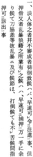 一 歳老いて妻なき、歳老いて夫なき、幼にして親なき、又養ひ育つべき身よりどもなきもの、かたわにてなりわひの術なりかぬるもの、子供殊の外多く之あり、たつきなりかぬるもの