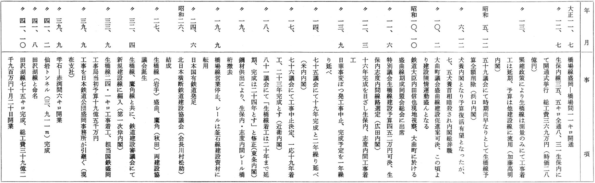 最後に、橋場線から田沢湖線に至るまでの経過を、大曲市長最上源之助氏の『田沢湖線建設年表』を掲げる(昭和四十一年発行)。