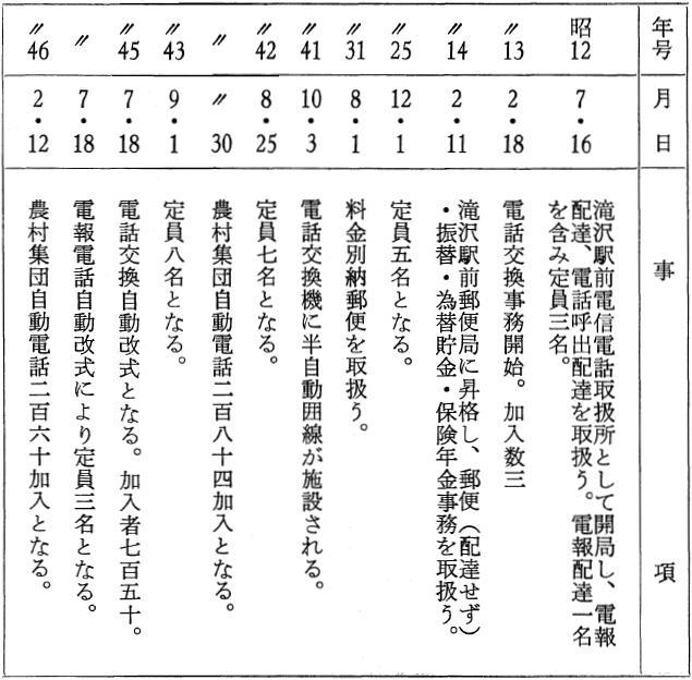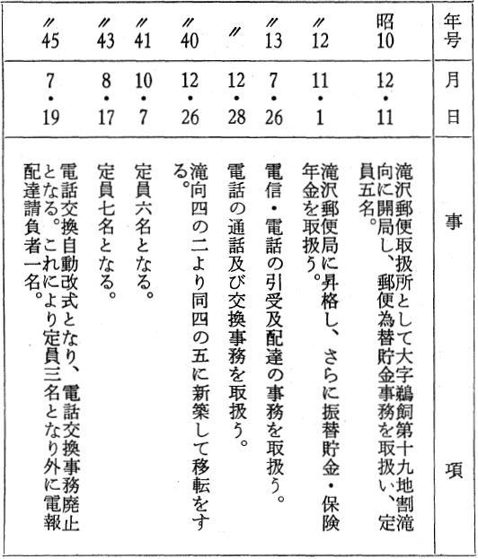 本村の郵便局に関して滝沢駅前郵便局長の青刈定夫氏は、次のように述べている。