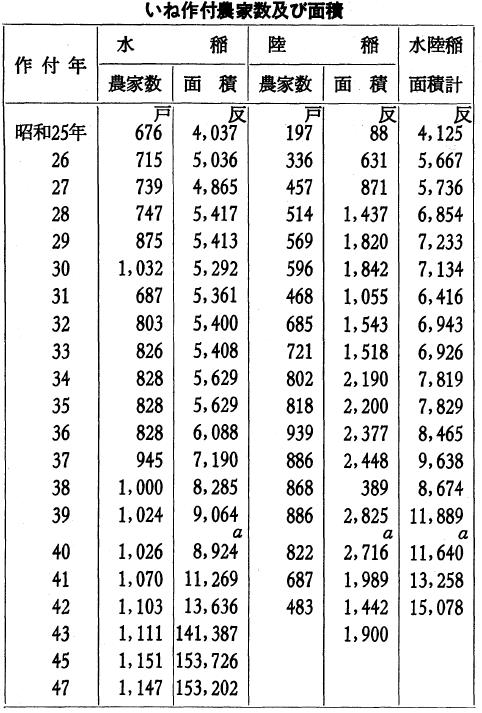 最近の水稲生産は平年作を上廻り、年々連続豊作をもたらしている。この豊作は天候等の自然条件に恵まれたことにもよるが、土地改良による生産基礎の整備、稲作技術の進歩の普及、特に品種改良と優良種子の普及によるものと思われる。