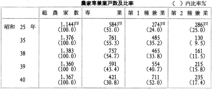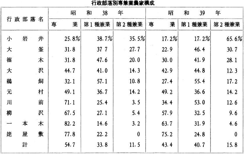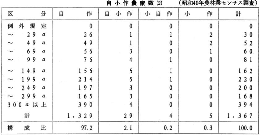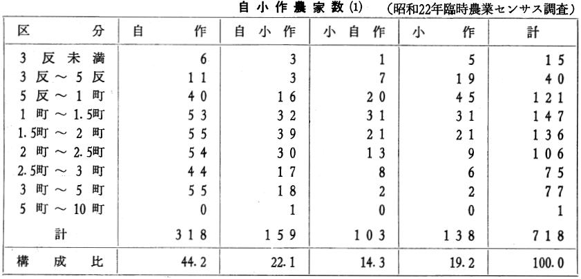上のごとく、明治三十年から大正末年までの期間に、農耕地は水田も畑地も、自作地が崩れて小作地になる率は高いことを示している。このことは農業経営の近代化は行われたが、資本の蓄積のない小農は、資本あるものへ農地を兼併されてる統計上の表現であるといえる。