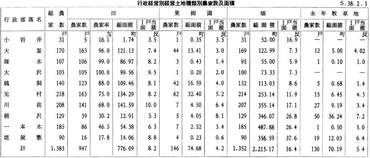 大正元年において、田畑の自小作別・郡市別構成をみるに、胆沢郡、和賀郡、岩手郡、紫波郡の順に田が多く、紫波郡、和賀郡、胆沢郡が一戸平均一町歩位の田を耕作している。これについで和賀郡、西磐井郡、岩手郡が一戸平均〇・八町歩乃至〇・七町歩となるが、岩手郡においては畑がこれを補い、合計二・三町歩を耕作している。