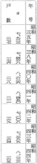 一町歩以下の農家戸数を小農とし、その増減をみると、明沿二十七年の例では五万二千九百九十三戸であり、これを一〇〇として大正十年をみると五万七千三百三十八戸であって指数が一〇八となり、この間四千三百数十戸の一町歩以下小農が増加してい、る。一町歩以上二町歩までの中農もこの間(自明治二十七年至大正十年)凡そ一千戸近い減少振りであり、指数も九六であって、この中農もまた没落しつつあることが判明する。