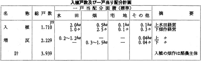 (1) 昭和三十年度よりダム工事の再開と共に、開拓計画も整備したが、用地取得の買収が困難となり、昭和三十三年三月、本省農地課において買収工区と土地改良工区とを区分し、買収工区は用地所得が済み次第地区開拓計画を整備することとし、土地改良工区は土地改良法第八十七条二の二項で行うことにした。