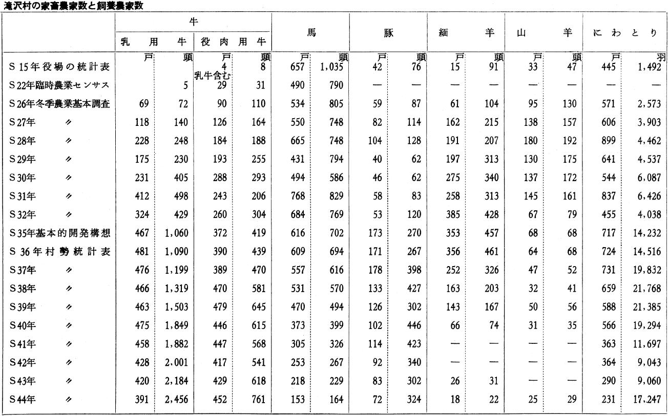 本村の畜産について『滝沢村の実態とその基本的開発構想』の中から次掲をする。