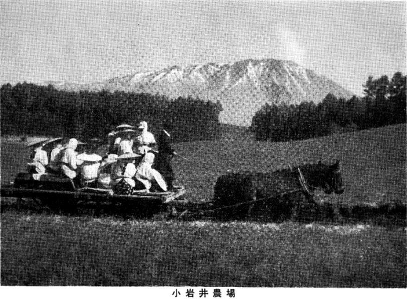 明治二十四年八月、岩手山の南麓の地雫石・西山・滝沢に跨がる所に小岩井農場が創設され、小野義信、岩崎弥之助、井上勝三人の共同事業によるもので、反別一百町歩、はじめ田畑の開発に力を注いだが、明治三十二年より岩崎久弥の個人経営に移り、従来の農場から漸次牧場経営を主とし、育馬・育牛・育羊・耕耘・樹林の六部制となり、育馬・育牛で名声を高くし、全国的に有名になった。
