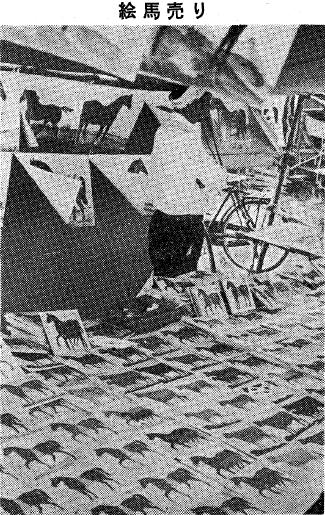 第二の戸籍はその年生れた子馬の毛色・額の星・脚の白等の特徴を描いた絵馬を買い求めて、これをうまやの入口に掲げ、その馬の戸籍札とすることである。