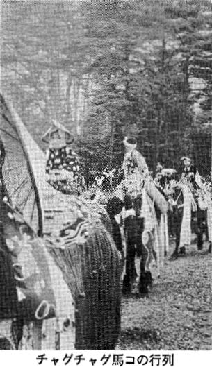日清戦争のころから、岩手県は軍馬育成地になったので、どこの農家でも馬を飼うようになり、農耕馬のみならず、軍馬の生産が盛んであったから、チャグチャグ馬コも非常に盛んになり、地元の本村では壱千頭程が参拝をしている。
