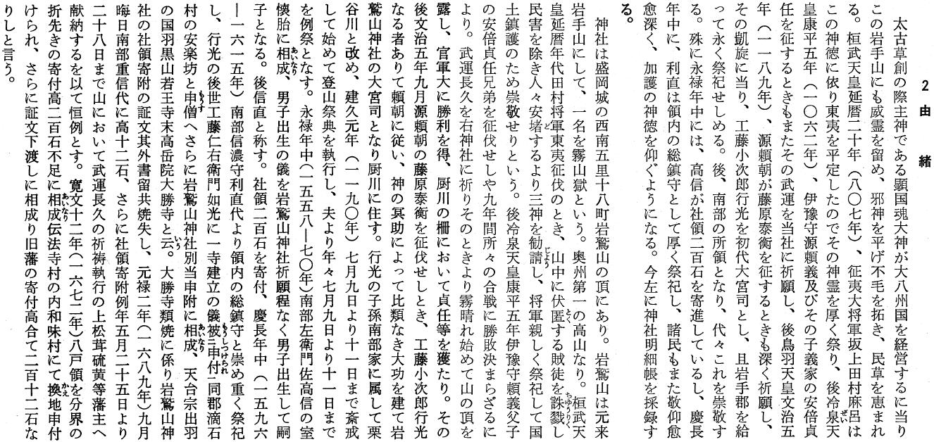 明治三年には、大釜の八幡宮・篠木の田村神社・大沢の熊野神社・鵜飼の駒形神社・滝沢の角掛神社がそれぞれ村社に決定されたのである。岩手山神社は郷社から大正五年十一月に県杜に列せられている。