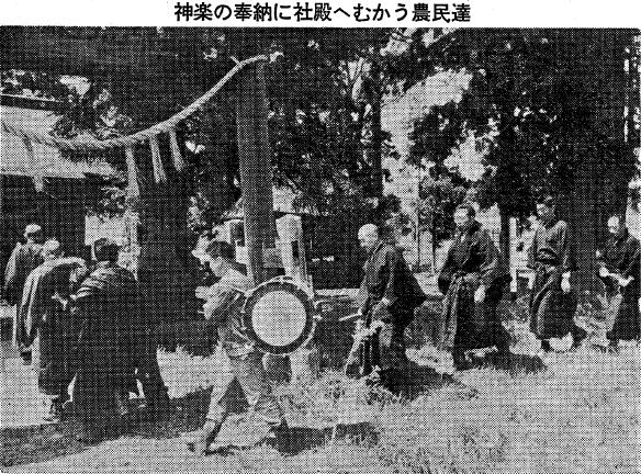 旧藩時代における村の祭りは、藩の民政の一部であって、日照りがつづいて水が涸ると、雨乞いの祈祷をやり、神楽を奉納し、霖雨低温で冷害の恐れがあると、天気快晴の祈願祭をやって、神楽を奉納したのである。その他氏神の祭りにも神楽を奉納したのが恒例であり、十月以降初春のころにかけ、各山伏はその支配区域を春祈祷して巡り宿泊する家では夜神楽・朝神楽を舞い、予約希望に応じては昼神楽を舞うのであった。この外新築した家を回り「屋がため」「柱がため」といって舞ったのである。