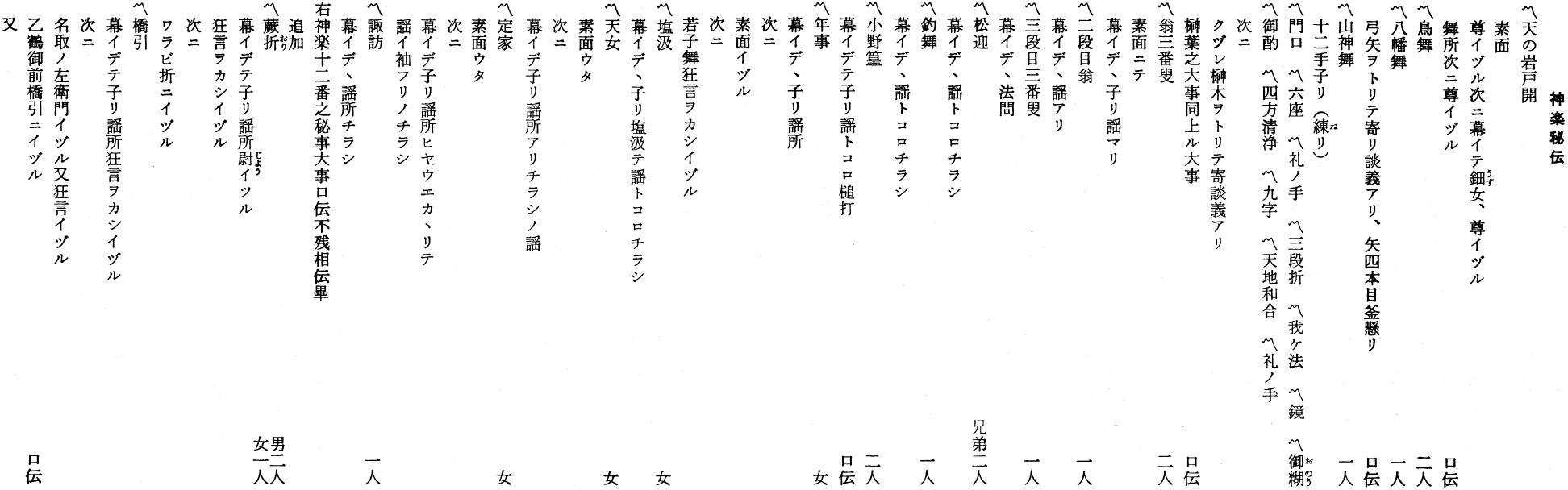 この伝授書に記されてある斎藤淡路守正吉は、万治三年(1660年)八月神道管領長卜部兼連から裁許状を下付された人である。これが同一人であるとすると、安永二年(1773年)に伝授された藤倉帯刀は工藤宮十郎・山崎定右衛門などからも習得したものであろう。その篠木神楽は万治年代に活躍した斎藤淡路守正吉の代までさかのぼることができよう。
