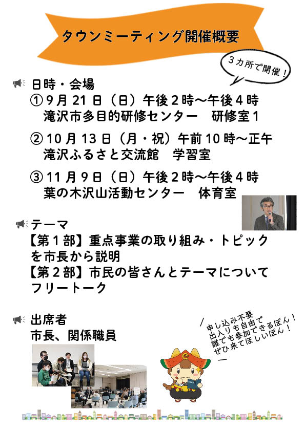 市長の想いを直接聞いて、滝沢の未来について語り合いましょう!