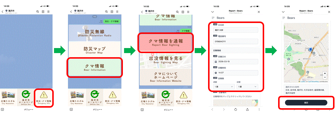 - 「クマ情報を通報」を選択