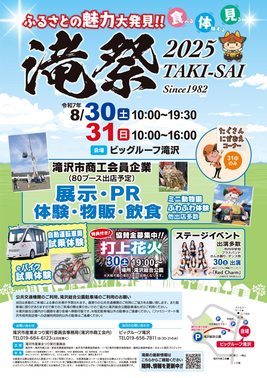 「滝祭2025 TAKI-SAI」(第42回滝沢市産業まつり・第9回商工会まつり)が下記内容にて開催します。