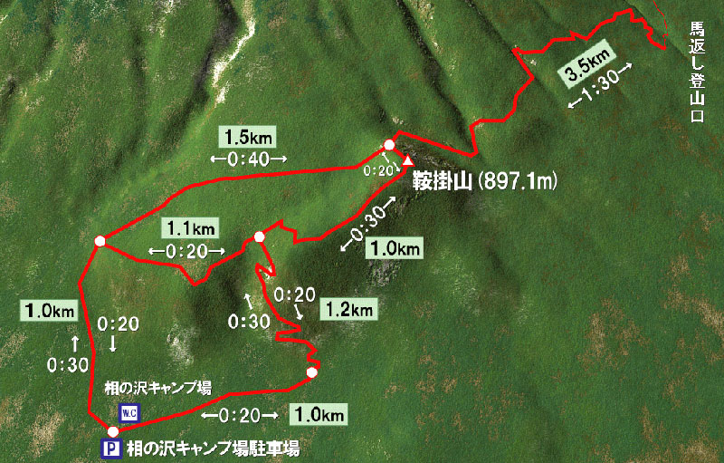- 山頂より相の沢キャンプ場まで(約1時間)