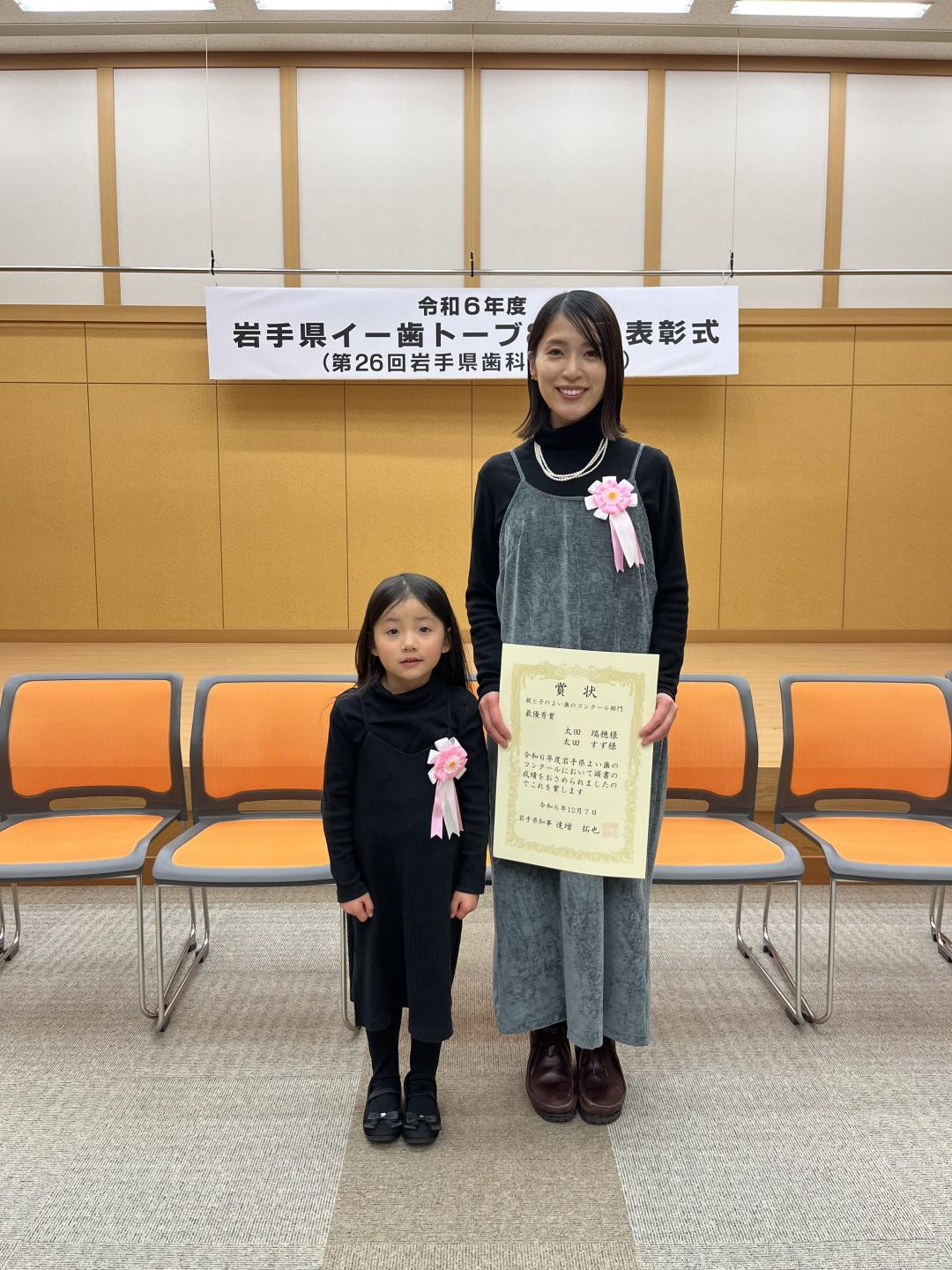 滝沢市から選出した親子が岩手県の親と子のよい歯のコンクールにおいて、最優秀賞に選ばれました。