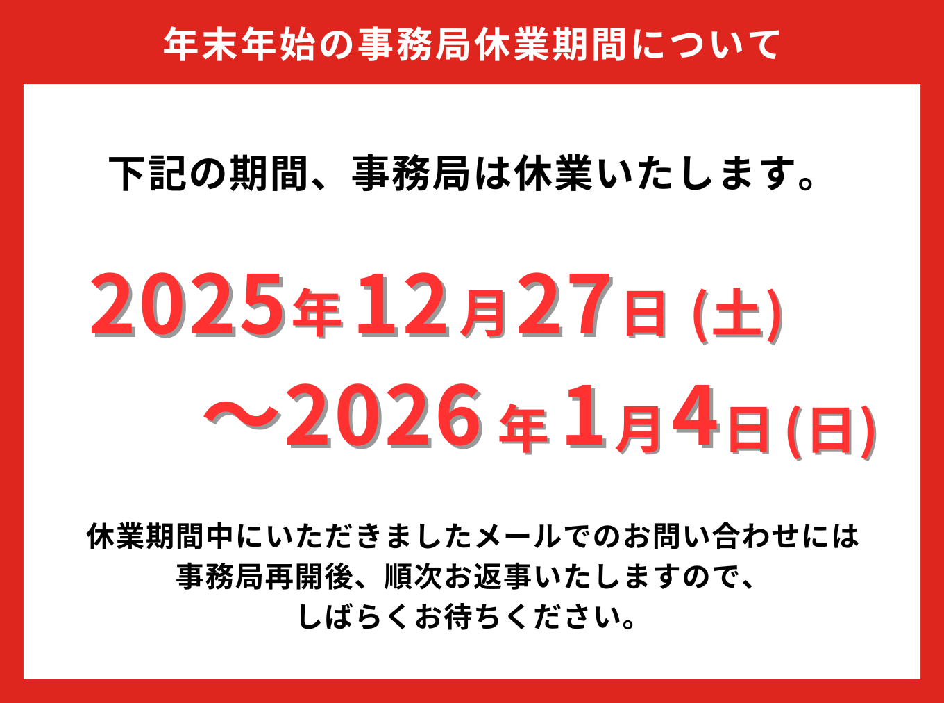 年末年始における対応につきまして