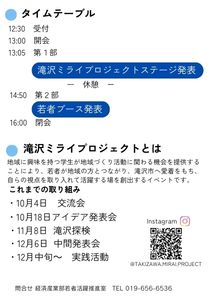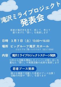 高校生や大学生若者が滝沢市を見て、感じて、考えて創りあげた「想い」を発表します。