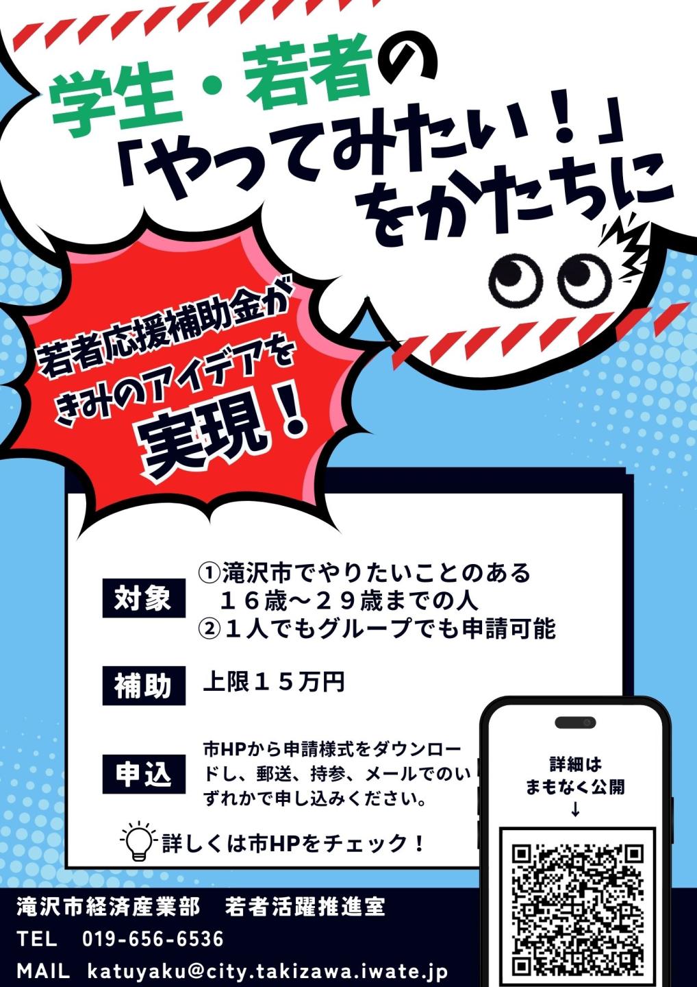 及び、令和7年度滝沢市若者応援補助事業実施要項ご確認ください。