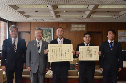 退任人権擁護委員に対する感謝状伝達式が、1月20日に市役所で開催され、前人権擁護委員の主濱惠悦(しゅはまけいえつ)さん(篠木)に法務大臣感謝状が、戸澤勝進(とざわしょうしん)さん(巣子)に県人権擁護委員連合会長感謝状が贈られました。主濱さんは、平成20年10月1日付で法務大臣から人権擁護委員を委嘱され、令和2年12月31日までの4期12年3カ月にわたり、保育園や学校などでの人権教室のほか法務局での人権相談をはじめ、各種啓発活動にも貢献されました。戸澤さんは、平成29年10月1日から令和2年12月31日までの1期3年3カ月にわたり、人権教室や地域での街頭啓発活動に積極的に取り組みました。伝達式では、主濱市長の立ち会いのもと、望月亮一(もちづきりょういち)盛岡地方法務局人権擁護課長から感謝状が伝達されました。主濱市長は、日本国憲法の1つである「基本的人権の尊重」と密接な関連がある人権擁護の大切さを強調しながら、人権擁護委員として活動してきたお2人の長年の功績を称えました。