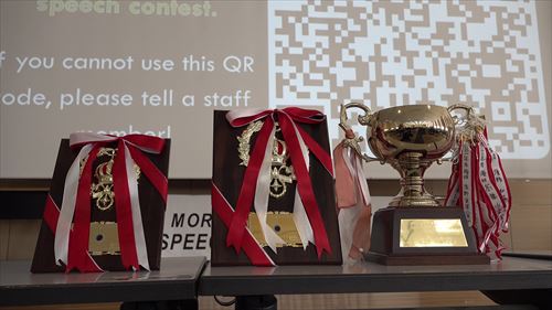 コンテストの最後には、盛岡市内の高校に勤める外国人教師など3人から審査結果が発表されました。第3位は「How to Sing Well」と題し、洋楽などを上手く歌う方法について話した冨樫淳之介(とがしじゅんのすけ)さん。第2位は「Are Developmental Disorders a Part of “Personality”?」と題し、自身の発達障害の経験や個性との違いについて話した横欠愛奈(よこがけあいな)さん。そして第1位には「Trust」と題し、友達との信頼について話した社会文化学科3年の上平詩織(かみたいらしおり)さんが輝きました。