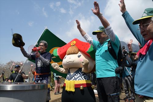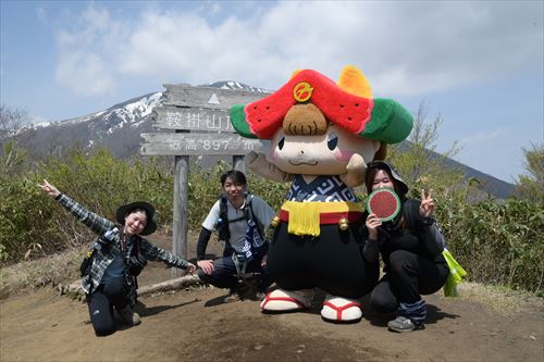 山頂では、市山岳協会創立60周年を記念した方位案内盤完成の除幕式が行われ、ちゃぐぽんも駆け付けました。