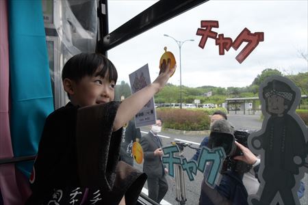 この企画は、公共交通であるバスの利用促進と観光資源であるチャグチャグ馬コのPRを目的に、平成30年から岩手県北自動車株式会社と市が共同で取り組んでいるものです。