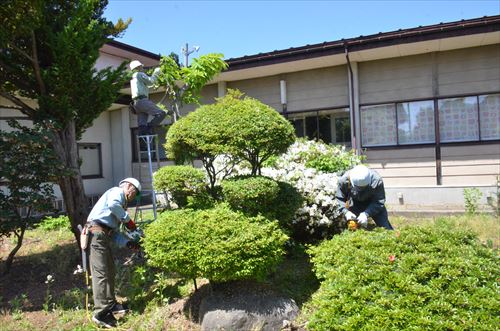 (公社)市シルバー人材センターが主催する剪定(せんてい)講習会が5月15日、市役所西側の上田邸で開催されました。