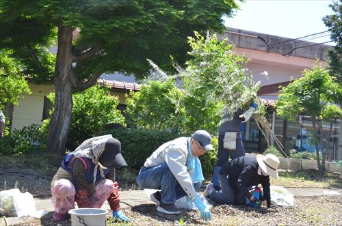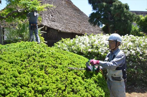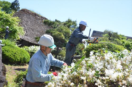 講習会には、会員を中心とした約30人が参加。草取り班では工藤邦男(くどうくにお)さんが、剪定(せんてい)班では中公義雄(なかこうよしお)さんが講師となり、参加者にアドバイスをしながら作業が進められました。