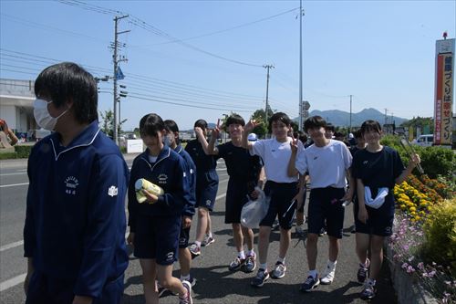 生徒たちは普段目の届かないところまでごみを見つけては、次々と袋へと入れていき、楽しみながら地域の景観保全に取り組みました。生徒たちの手により綺麗になった沿道は、当日には多くの観覧者で埋め尽くされていました。