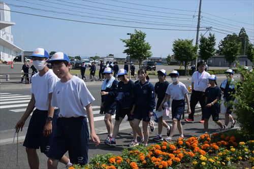 当日は6クラス約200人の生徒が6つのグループに分かれ、鵜飼地区のチャグチャグ馬コ行進経路を中心に、各担当場所に分かれてごみ拾いを実施。