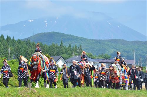 晴天の下、数年ぶりに岩手山も姿を見せ、馬コと同じフレームに収めようと多くの写真愛好家がシャッターを切りました。