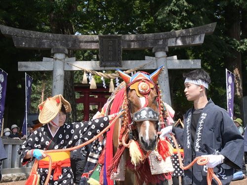 当日は装束馬60頭、役員馬7頭の計67頭のうち、市内からは39頭の装束馬が参加し、鬼越蒼前神社を出発。盛岡八幡宮まで約14kmの道のりを行進しました。