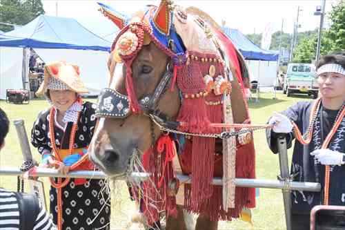 これは、(公財)市観光物産協会がチャグチャグ馬コを盛り上げるため同日に開催したもので、当日は今年新発売した市の日本酒「ばっぱれ」がチャグチャグ馬コラベルで限定販売されるなど、多くの出店で賑わい、郷土芸能や吹奏楽などのイベントも行われました。