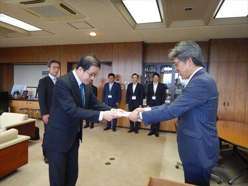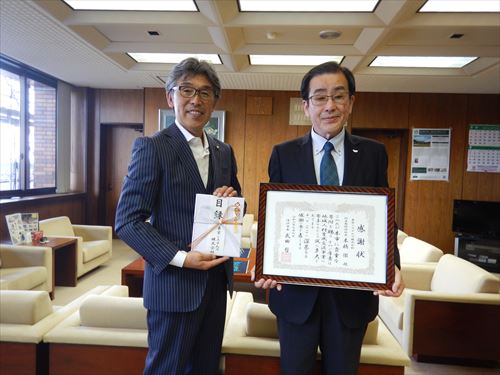 企業版ふるさと納税の贈呈式が7月4日、市長室で行われました。