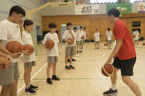 岩手ビッグブルズによるバスケットボールクリニックが7月7日、滝沢総合公園体育館で開催されました。