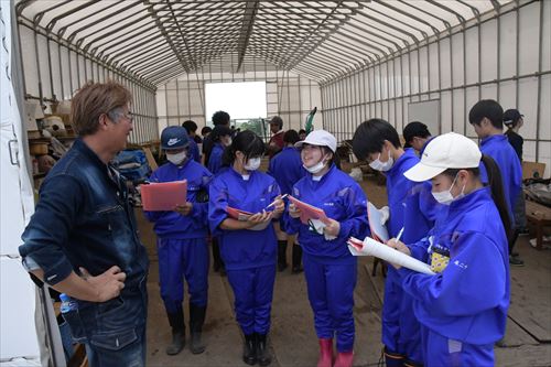 酪農体験が行われた鵜飼花平にある鈴木農園では、代表の鈴木稔(すずきみのる)さんをはじめ、地域の酪農家の団体である花平ホルスタイン改良同志会の皆さんや盛岡農業高校生も指導者として参加し、生徒らを温かく迎えました。
