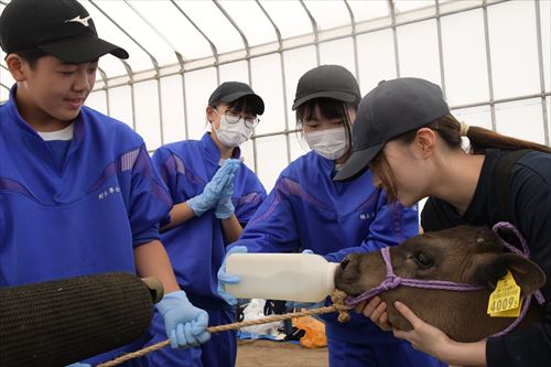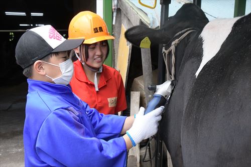生徒らは、普段の酪農家の1日の流れなどについて話を聞いた他、トラクターへの乗車や牛の搾乳、仔牛への授乳など、さまざまな体験を通して、酪農の楽しさや普段口にする牛乳ができるまでの苦労などを身をもって感じていました。