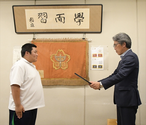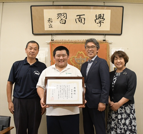 武田市長は「伊東さんのような行動は、なかなかできることではなく、とても誇らしいです。これからも高校生活を頑張ってください」と激励しました。