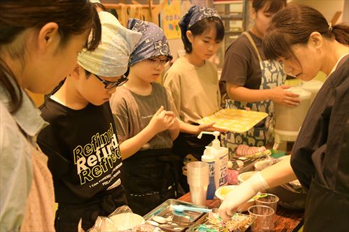 当日は、たきざわスポラを利用する子どもたち7人が、みたらしだんごやプリン、ヨーグルトアイス、トロピカルジュースなどのカフェメニューを手作りで準備し、来場したお客さんに振る舞いました。