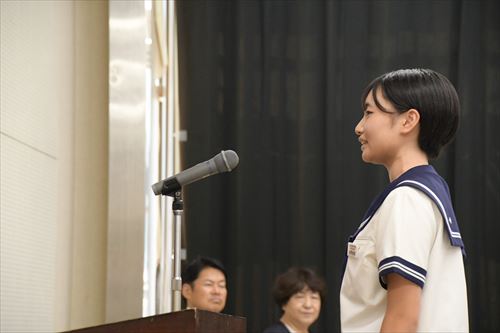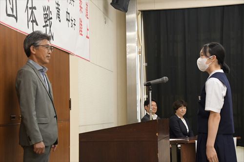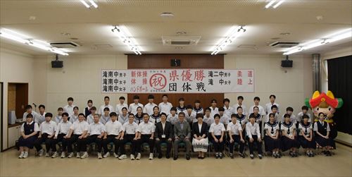 当日は、同大会で活躍した中学生47人が優勝旗や賞状を手に、東北大会・全国大会に向けての抱負を堂々と語りました。