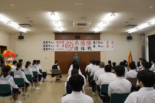市長は「皆さんの活躍は大きな勇気と感動を与えました。東北大会や全国大会も頑張ってください」と激励しました。